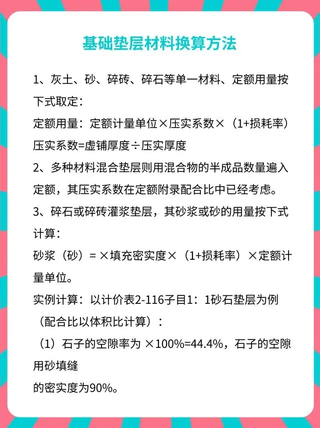 很多造價(jià)預(yù)算人員在學(xué)習(xí)或者工作當(dāng)中,會(huì)對(duì)一些常用的換算方法不是很熟悉,當(dāng)工作的時(shí)候可能會(huì)存在問(wèn)題,而且經(jīng)常出錯(cuò),比如說(shuō),基礎(chǔ)墊層材料換算方法、磚砌體材料換算方法、樁基混凝土用量換算方法、組合鋼模板等等。今天小編給大家整理了常用的十三種換算方法,僅供參考,大家可以查看學(xué)習(xí)哦!